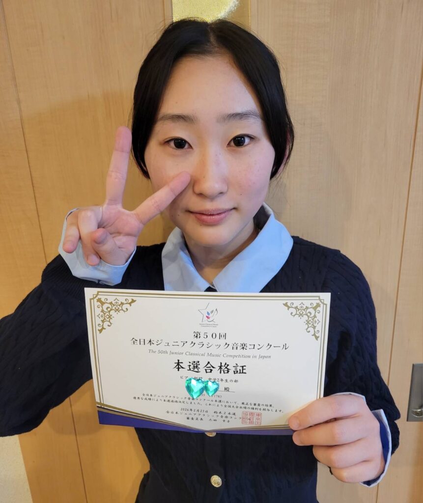 先月あった全日本ジュニアクラシックコンクール本選 中学2年生の生徒さんが出場しました。 曲は自由曲でみなさんすごい曲を弾かれていました。生徒さん、あまり思うように弾けなかったとのこと。 私も聞きに行っていろいろミスがあったのでどうかなぁと思...